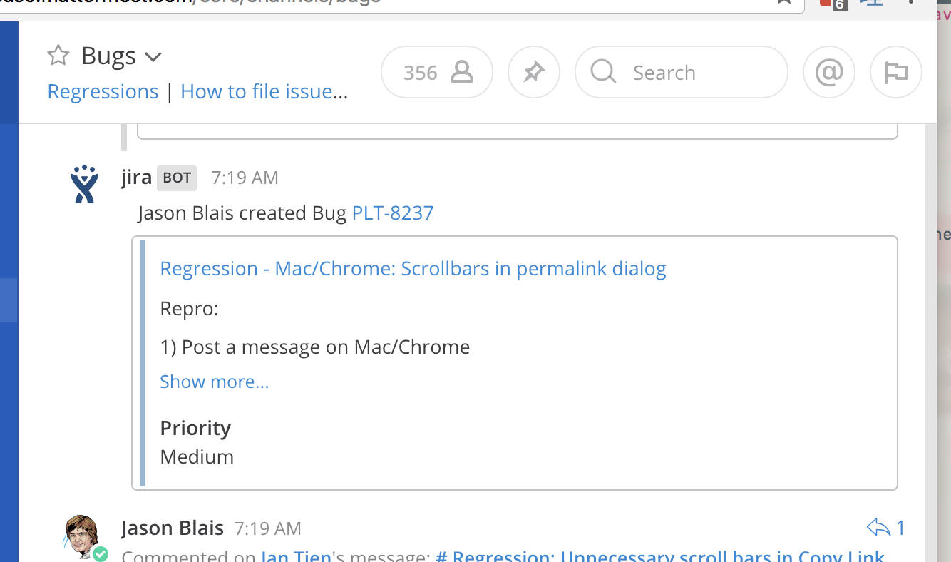 The JIRA plugin for Mattermost creates a webhook that your JIRA server can use to post messages to Mattermost when issues are created: